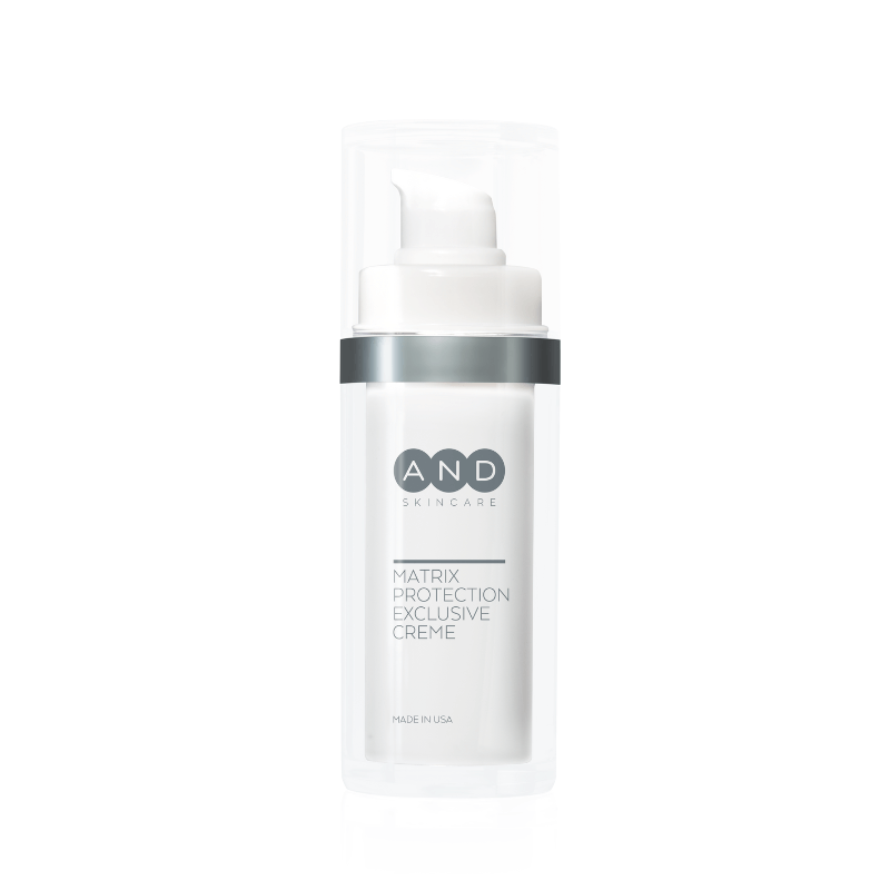 Die Inhaltsstoffe der MATRIX PROTECTION EXCLUSIVE CREME bilden einen natürlichen und eleganten Barriereschutz für die Haut, verbessern so die Elastizität und mindern feine Linien und Fältchen. Mit ihrer außergewöhnlichen Kombination exzellenter Wirkstoffe wird die sehr trockene oder auch die barrieregestörte Haut innovativ gepflegt, vor Feuchtigkeitsverlust und vor schädlichen Umwelteinflüssen bewahrt. AND kombinierte auch hier das Schlüssel-Schloss-Prinzip von Aminosäuren mit den Liquid Crystals und entwickelte eine tiefenwirksame Crème de la Crème, die höchsten Ansprüchen gerecht wird.